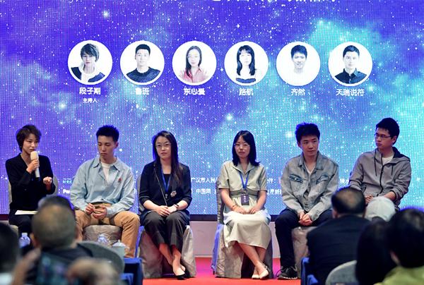 Young sci-fi writers take part in a panel discussion during a summit forum before the 14th Chinese Nebula Awards gala in Guanghan, Sichuan province, May 13, 2023. [Photo courtesy of EV/SFM]