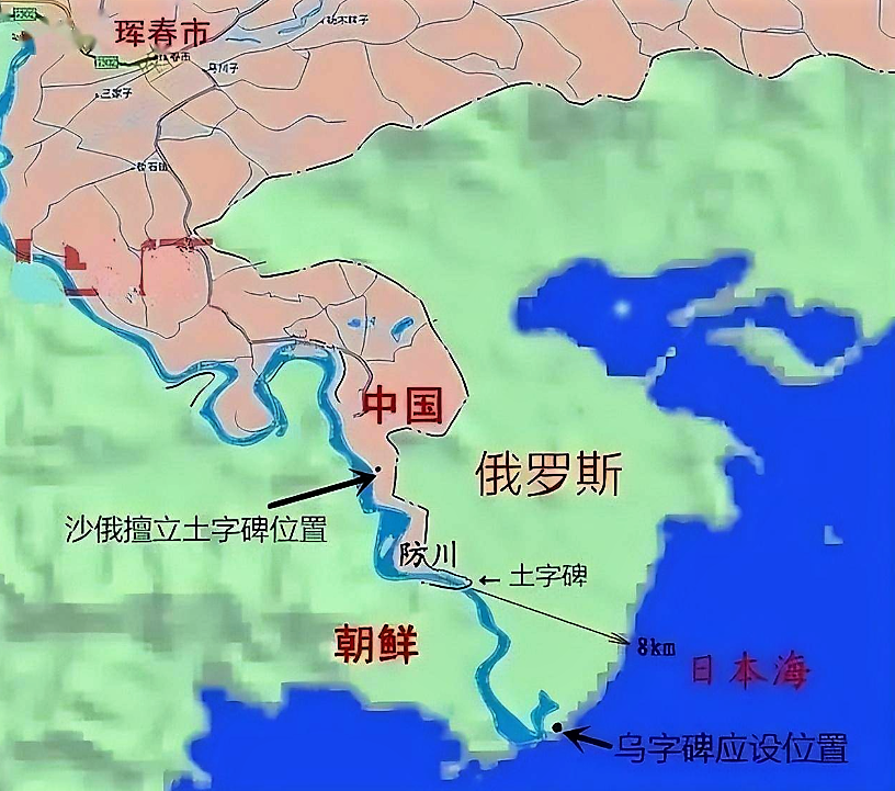 更要命的是,丢掉了海参崴,当时昏庸的清政府,还丢掉了图们江的入海口。在确立界碑时,因钦差大臣成琦无知且懒惰,据说是烟瘾犯了,将勘界丢给了对手。结果应属中国的罕奇海岸被划归沙俄,甚至倒数第二块“土”字碑也放到远离日本海40多公里的中国境内,要不是都察院左副都御史吴大澂发现情况据理力争,并把土字碑往外推进,今天珲春的敬信镇也彻底地保不住——这也导致了图们江下游15公里,成了俄罗斯人口中的图曼纳亚河,和我们中国没有关系。而这条图曼纳亚河,也是俄罗斯与朝鲜在陆地上唯一边界。
