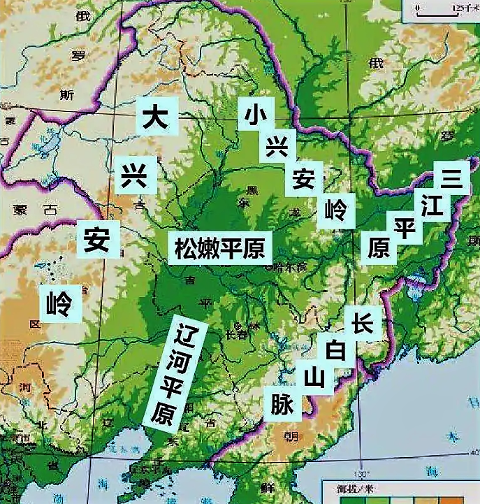 【东三省地形图。相当长时间,位于渤海湾的大连是整个东三省的主要出海口|来自网络】