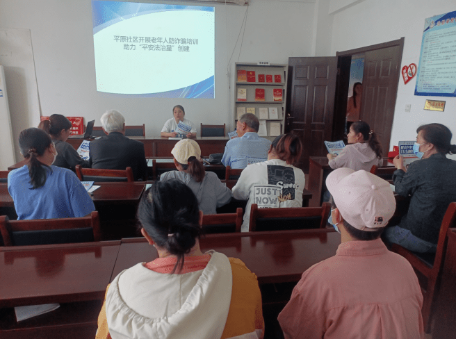 5月19日上午,平原社区开展“老年人防诈骗培训”助创平安法治星活动。提高老年人知骗防骗能力,切实维护老年人合法权益,有效预防养老诈骗违法犯罪。