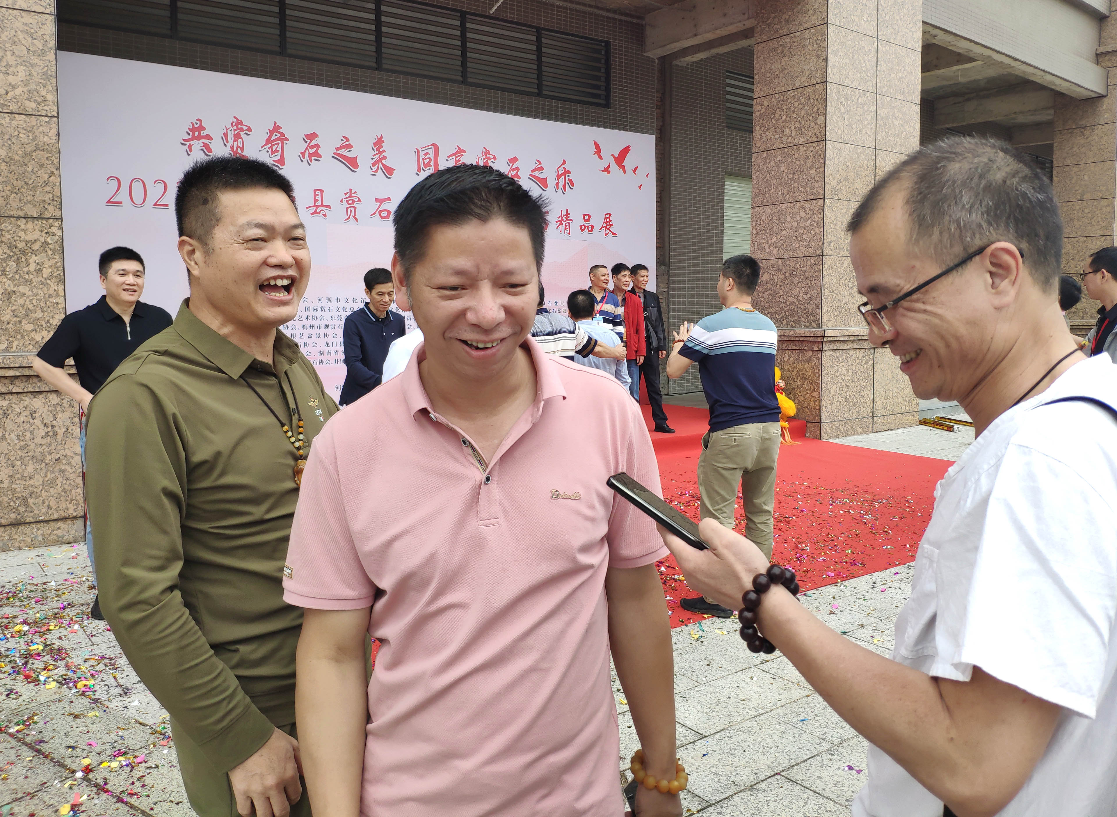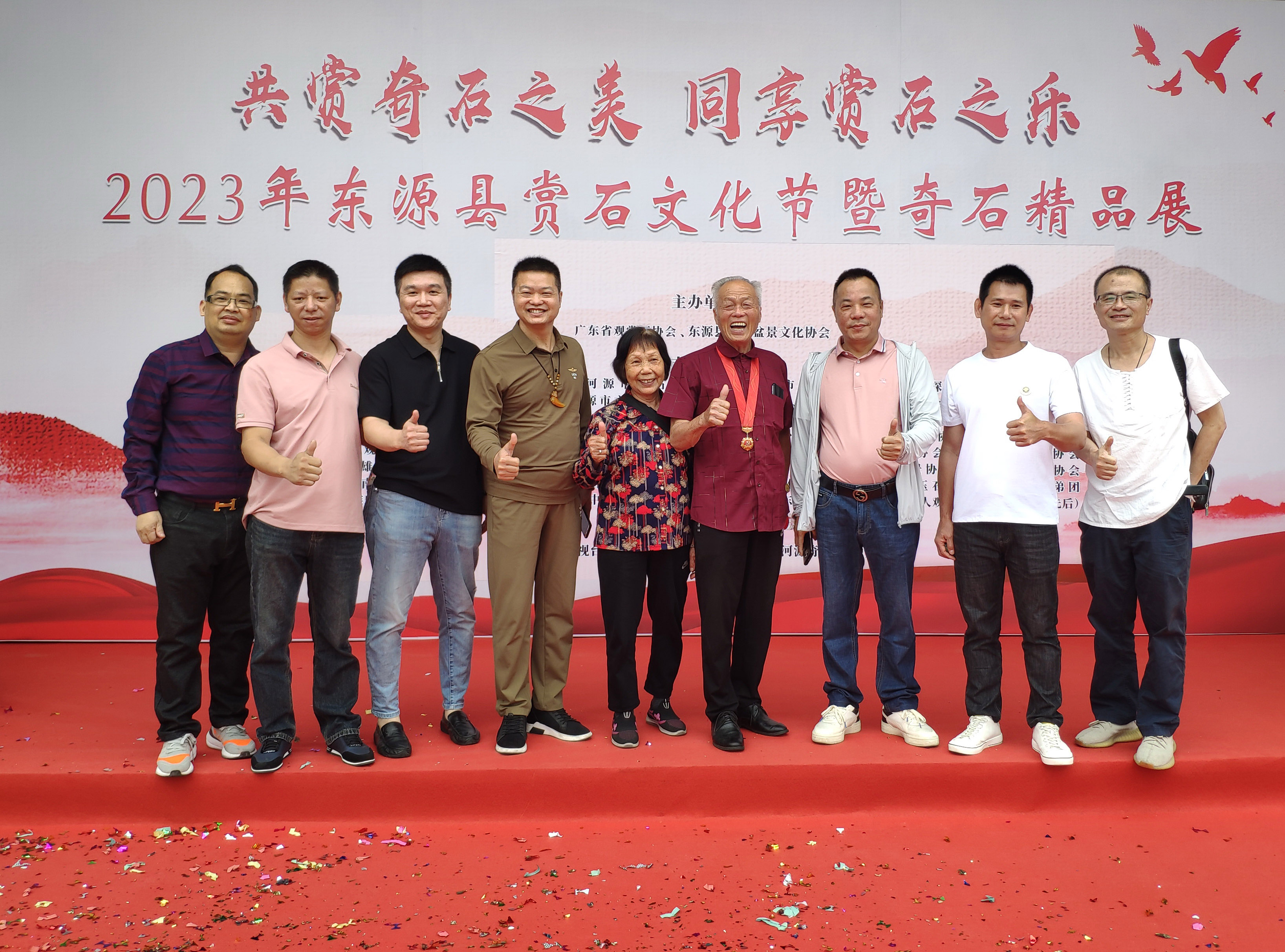 5月13日,文化节期间,中国首批"赏石艺术”传承人、深圳市观赏石文化艺术协会会长甘旺宗,党支部书记、副会长卢兴求,副会长蓝杰、郭妙辉,理事邹东升,秘书长张建庭等与来自全国各地的观赏石展商、从业者和爱好者齐聚东源,共赏观赏石文化的魅力。