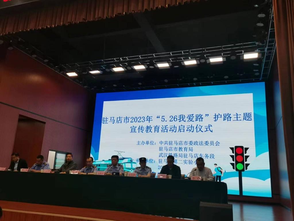 为切实增强驻马店市铁路沿线广大民众铁路安全和爱路护路意识,促进学校加强学生安全行为教育和养成,5月26日上午,中共驻马店市委政法委员会、武汉铁路局驻马店车务段、驻马店市教育局、驻马店西车站派出所、驻马店车站派出所等单位联合走进驻马店市第二实验小学(东校区),开展了“5.26我爱路”护路主题宣传教育活动启动仪式。