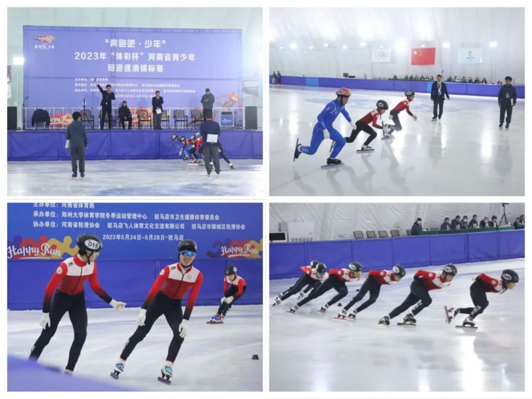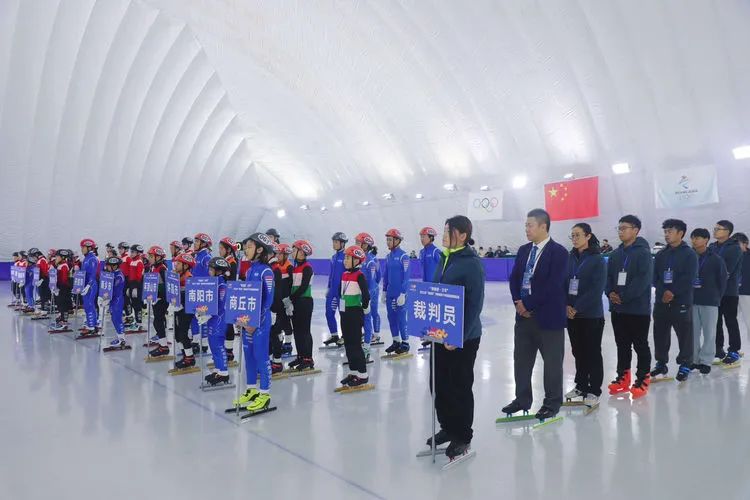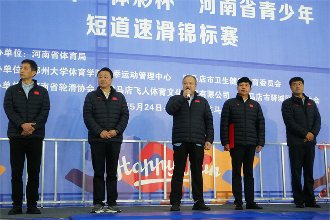 5月27日上午,由河南省体育局主办,郑州大学体育学院、驻马店市卫生健康体育委员会承办的2023年“奔跑吧·少年”“体彩杯”河南省青少年短道速滑锦标赛在驻马店市北极滑冰馆开赛。郑州大学体育学院党委书记张绍通、市政府副市长李全喜、河南省体育局青少年体育处处长马延春等出席开幕式。张绍通宣布锦标赛开幕。驻马店市卫健体委党组成员、副主任孟丽主持开幕仪式。
