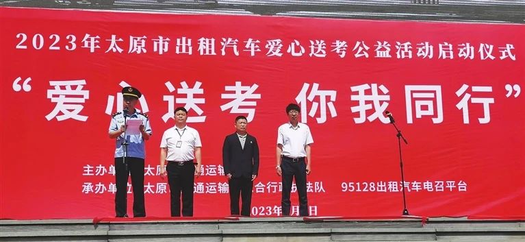 6月1日,由市交通运输局主办,市交通运输综合行政执法队、95128电召平台承办的2023年出租汽车“爱心送考 你我同行”公益活动启动,广大考生可通过3种方式预约出租车免费送考。
