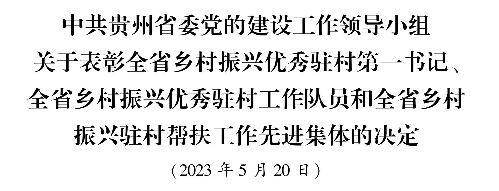 向重点乡村持续选派驻村第一书记和工作队,是党中央着眼巩固拓展脱贫攻坚成果、全面推进乡村振兴作出的重大部署。2021年以来,全省各级各单位认真学习贯彻习近平总书记关于“三农”工作重要论述和视察贵州重要讲话精神,自觉把驻村帮扶工作作为重大政治任务,总结运用打赢脱贫攻坚战重要经验,加强组织领导、强化保障支持,做到力度不减、力量不减、资金不减,持续选派10043名第一书记、22132名工作队员,扎实推动新阶段驻村帮扶工作取得新成效。广大驻村第一书记和工作队员怀着对党的绝对忠诚、对人民群众的真挚感情,全面落实驻村帮扶各项职责任务,涌现了一批成绩优异、工作突出的先进典型,办了一批得民心、惠民生、顺民意的实事好事,赢得了全省各族群众的欢迎和好评。为表彰先进、弘扬正气,激励广大驻村第一书记和工作队在乡村振兴一线奋勇争先、建功立业,省委党的建设工作领导小组决定,授予戴民族等111名同志“全省乡村振兴优秀驻村第一书记”称号,授予熊庭波等103名同志“全省乡村振兴优秀驻村工作队员”称号,授予贵州省烟草专卖局(公司)结对帮扶六盘水市水城区工作队等122个集体“全省乡村振兴驻村帮扶工作先进集体”称号。