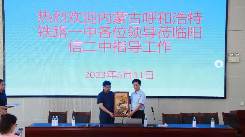 在座谈交流中,参访团通过观看宣传片《阳信二中:走好优质特色办学之路》,全面了解了阳信二中的办学理念以及教育教学管理、德育管理、校园文化建设、教师队伍建设等方面的经验与做法。吴子胜老师现场作经验介绍,《从优秀走向卓越》深入浅出地展示了阳信二中作为一所县域高中在优生培养方面的全新做法,给参访团留下了深刻印象,纷纷表示收获满满,不虚此行。为表达友情,内蒙古呼和浩特市铁路一中现场给阳信二中赠送了具有草原气息的纪念品并合影留念。