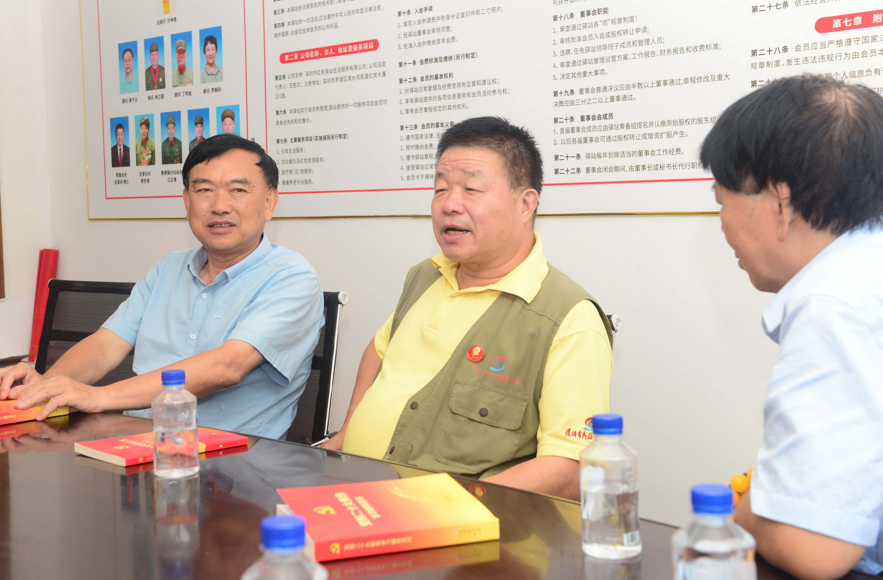 为庆祝改革开放45周年,在深圳红色驿站的党员活动室,刘对现、王胜文、卢兴求、曾超炎、王平、覃东安、于宗胜、吴福寿、余丽梅、夏金凌、吕胜利及陈惠红等座谈交流,分享6月5日至6月6日,一期主题为“大潮起珠江,军魂铸鹏城”的CCTV-7国防军事频道全国首档反映退役军人的电视栏目《老兵你好》节目在深圳市市民中心广场盛大开拍。在录制现场,兵味十足的灯光秀点亮深圳中轴线,更有数百架无人机编队不断变换队形,在夜空中组成军号、军徽、军旗等图案,向老兵致以崇高的敬意。与鹏城老兵共话特区发展、追忆奋斗青春。
