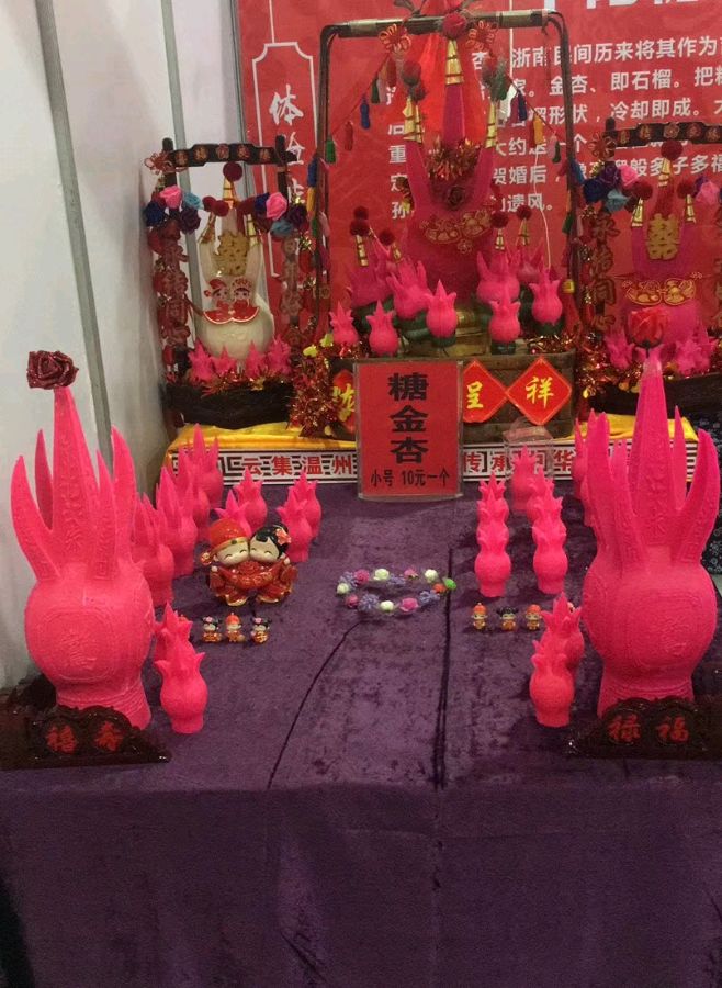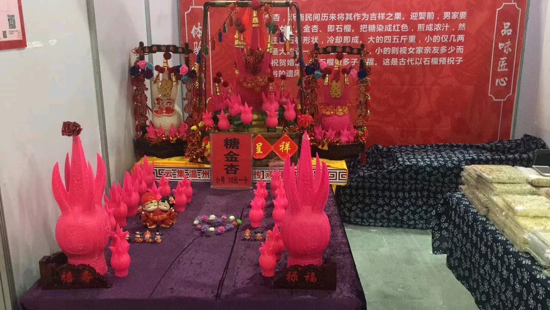 吴传友:是的,温州被称为糖金杏之城,虽说近些年经济大大发展了,人民的生活水平也提高了,很多民间的非遗技艺因为种种原因消声匿迹了,可是糖金杏由于自身的幸福美满的寓意却得到了更好的传承。在温州民间婚俗中依然有着媒约、合婚、议聘、小定、大定等古老礼仪。