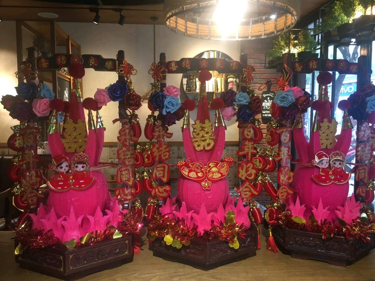 吴传友:糖金杏本身具有美好的祝福意义。具体到每一个的糖金杏的大小,主要是客户订制的需求不同。由于客户自身的经济条件,社会地位,家庭情况等多种因素影响,他们自身所需求的糖金杏有大有小,大的可以有五六斤,七八斤,甚至是十几斤,小的多数为半斤左右。作为婚俗礼品,在婚礼现场上多数是大小搭配,以成双成对的形式出现的。