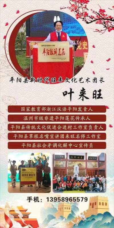 在此我也代表我们旺丰文化艺术团的全体工作人员向关心,支持,爱护及帮助我们的政府各级领导和社会各届人士表示衷心的感谢。你们的喜爱和支持是我们艺术团最大的动力,近年来,在原来鼓词演员的基础上,还特意选择优秀良师如:胡玉燕、缪秀燕、瞿春利等搭档唱莲花哩 啦 哩…,更使温州鼓词(鼓词莲花),深受广大听众喜爱、锦上添花、集聚人气地气。我们将秉持初心,砥砺前行。绝不辜负党和人民对我们的深切期望。