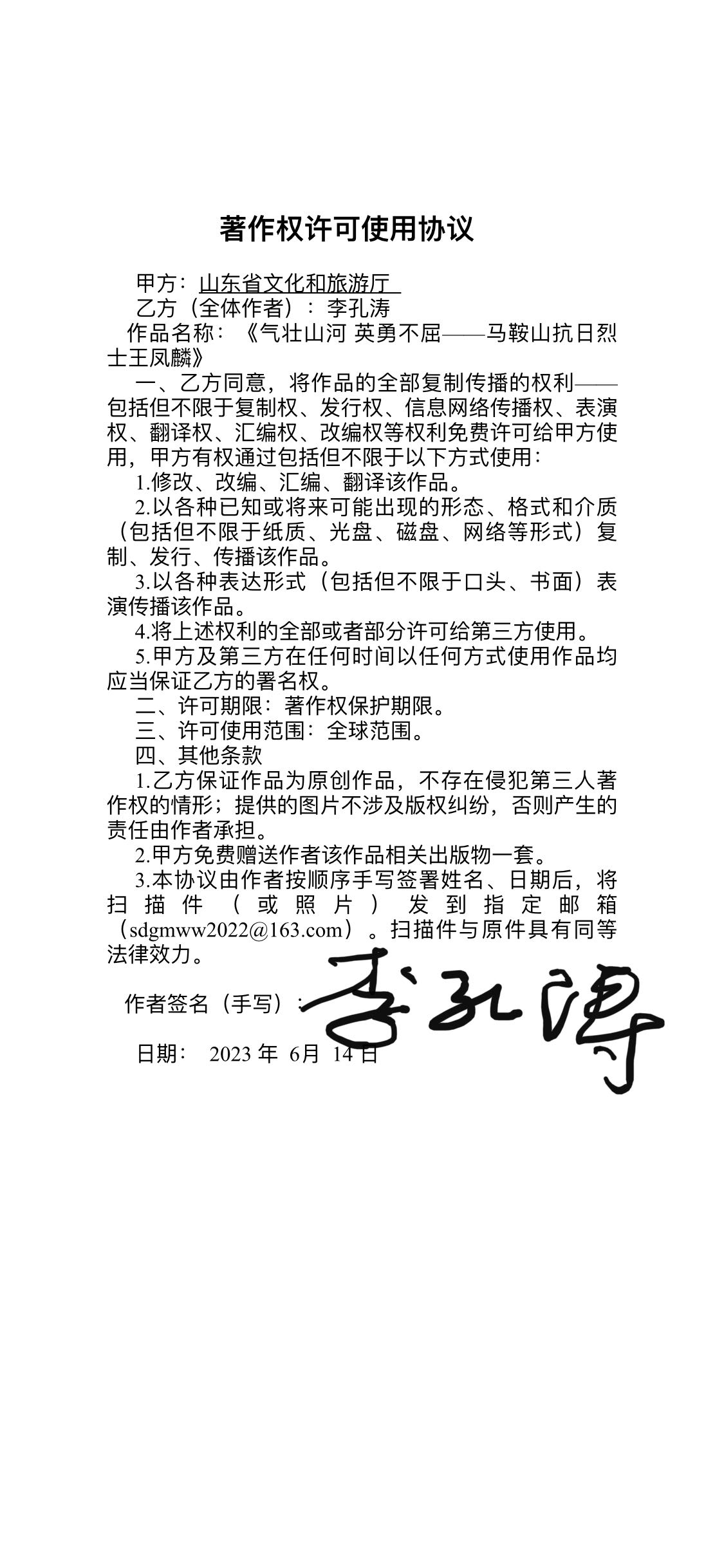 天道酬勤虽是老生常谈,却是至理名言。所说两个喜事都与此密不可分。近日吾征文能和山东省文化与旅游厅签下著作权许可使用协议,就是一个例子,该稿件历经数月,三易其稿…….