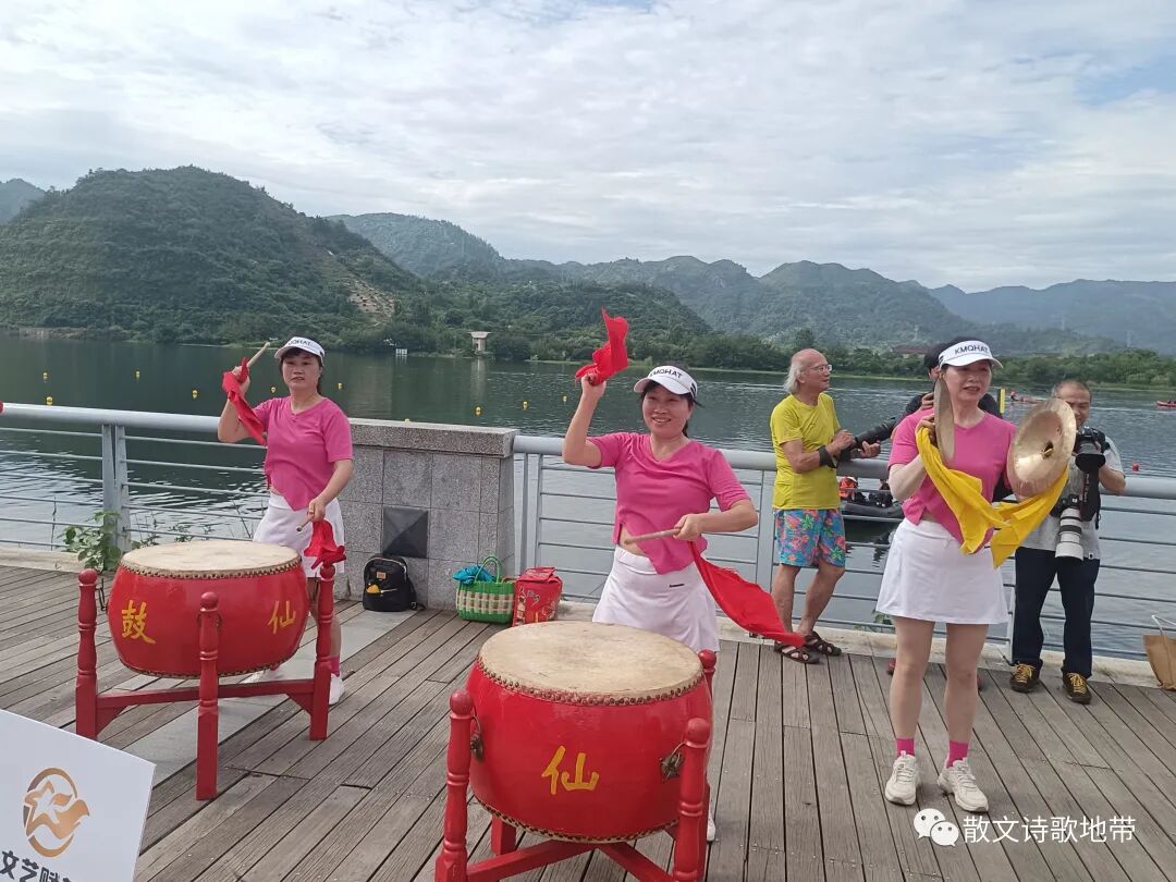 2023年6月19日上午,台州市在仙居县永安溪畔东区段,举行全民健身迎亚运、信心满怀奔共富2023年台州市农村文化礼堂运动会开幕式暨端午龙舟赛活动。主办单位:中共台州市委宣传部台州市体育事业发展中心仙居县人民政府承办单位:中共仙居县委宣传部仙居县体育事业发展中心协办单位:台州市龙舟协会仙居东区拥满人,龙舟比赛迎亚运。台州举办首次兴,端午相约湖畔迎。划桨运动争输赢,欢声笑语助威声。和谐氛围感激情,朝气蓬勃劲喜庆。七律.台州龙舟赛咏仙境东区旗满飘,龙舟赛事贤逢竞。台州举办永安溪,端午相携湖畔咏。划桨前荣健决赢,欢声笑语助威敬。和谐共处感豪情,朝气洋船劲喜庆。