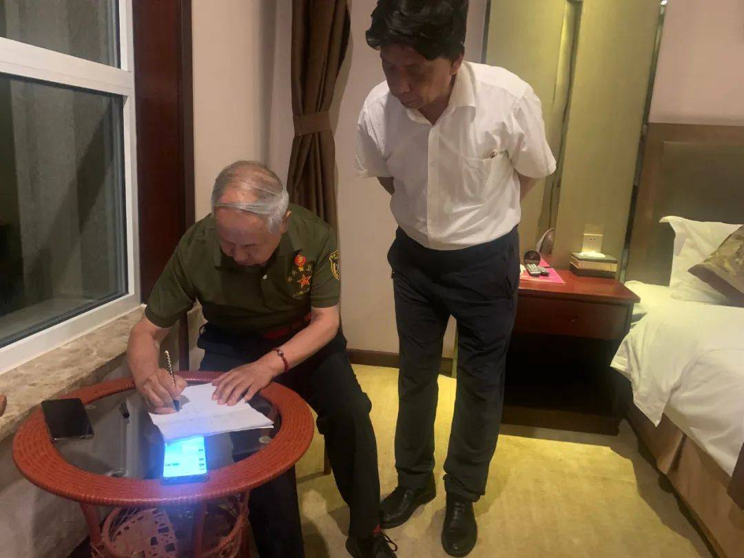 一家人志愿者团队代表温德军、范永强6月17日下午1点从石家庄出发,驱车650公里,于当晚8点半到达目的地后,首先拜访了8341部队毛主席警卫员、原工人日报社纪委书记李耿成。