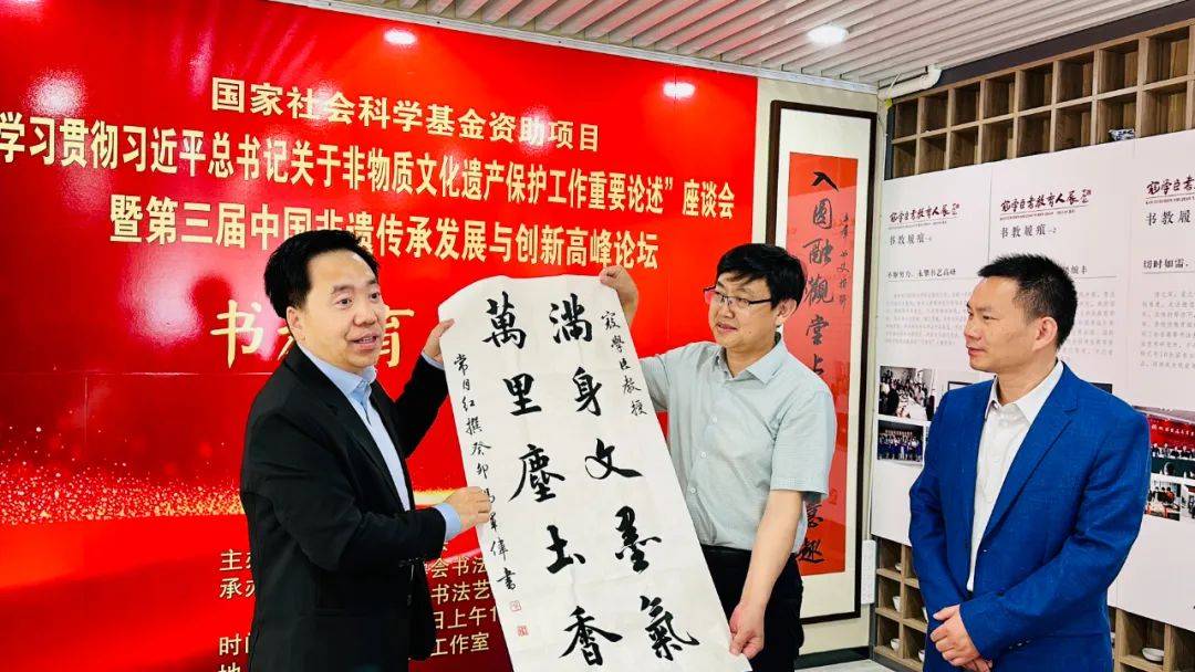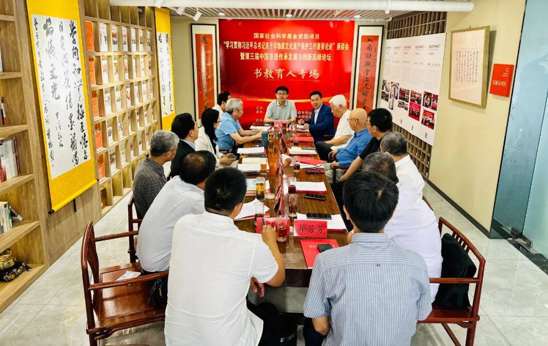 6月12日上午,由华夏文化促进会主办,河北省硬笔书法协会、河北省教育学会书法教育专业委员会、河北师范大学书法艺术研究所承办的“学习贯彻国家领导人关于非物质文化遗产保护工作重要论述”座谈会暨第三届中国非遗传承发展与创新高峰论坛书教育人专场在石家庄城市人文公共空间寇学臣书法工作室召开。论坛由华夏文化促进会非遗分会副秘书长冯军伟主持。