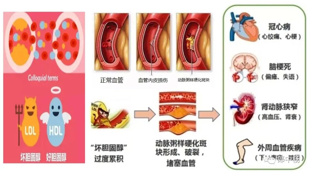 高碳水化合物饮食造成血中葡萄糖大量增加,多余葡萄糖和血中蛋白质、氨基酸、脂类、核酸等大分子结合成糖基化终末产物(Advanced Glycation End products,AGE)。过量的AGE会影响蛋白质性能、改变细胞功能,导致血管受损、斑块形成、粥样硬化等。另外,高碳水化合物造成氧自由基泛滥、脂质过氧化、血管内皮损伤,导致低密度脂蛋白和胆固醇变性堆积、血小板聚集,形成动脉粥样硬化斑块和血栓。血脂化验中的甘油三酯主要在肝脏合成,高碳水化合物导致肝脏合成血脂增加的同时,也为合成血脂提供了大量原料。这种饮食习惯对血流产生的上述影响,最终会引起不同程度的心脑血管疾病。