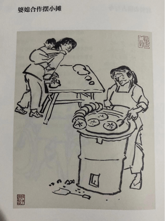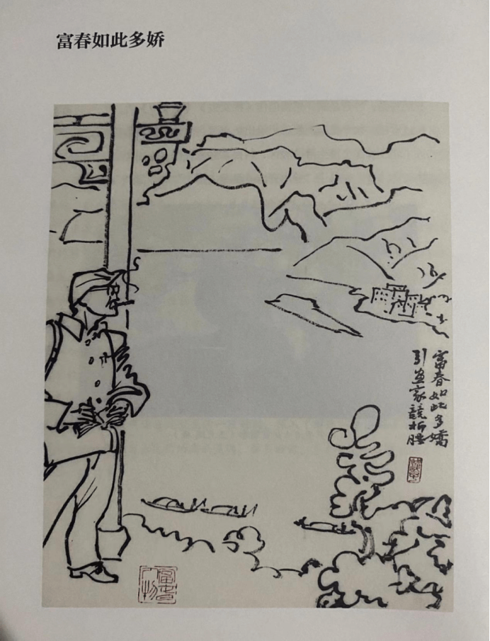 《解读》一书框架明朗,第一部分由《一座小城与一位大师》等八篇推文领衔,使人读过之后有一个总的概念。第二部分是叶浅予先生的一百幅画谱,一画一文进行“解读”,既有解释、赏析、评论,又具有导读功能。特别值得一提的是,作者尽量使用了与画有关的“史料链接”,把叶老的人物画谱回放到改革开放初期桐庐的社会大背景之下,赋予画面历史感和纵深感,画面人物立马鲜活了起来。叶老的如椽大笔描绘了当时桐庐各行各业的人物事件,大多是社会各界的普通人普通事。展开画谱,一股浓浓的人间烟火气扑面而来。画谱既是一首波澜壮阔的改开赞歌,也是一部浓缩了的时代画卷。