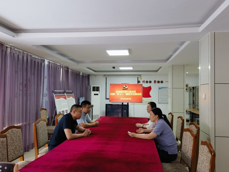 走访前,区委编办一行人先与七东社区针对2023年上半年的党建工作成果进行简单交流,然后为庆祝中国共产党成立102周年,深入学习贯彻党的二十大精神,继续充分发挥职能部门和在职党员资源优势,紧紧围绕群众所需所求所盼,拓展服务清单,优化共建项目而进行下一步重点工作落实。