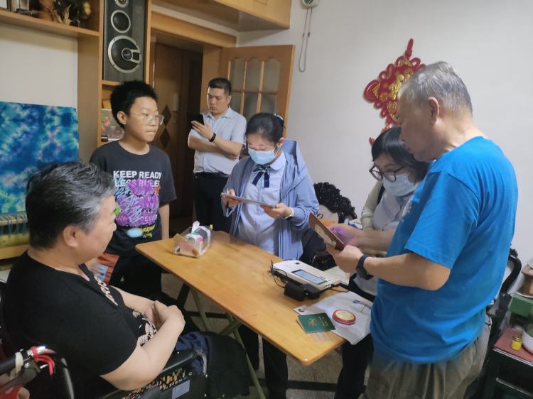 活动现场,七东社区还邀请了二七卫生院的医生,现场为来办理银行卡的残疾人免费贴耳穴、现场家庭医生签约等活动,社区工作人员在现场协助农商行工作人员为残疾人拍摄认证所需照片,填写办卡所需的表格和资料。活动最后,对于行动不便的残疾人社区工作人员和银行工作人员上门为其办理银行卡。