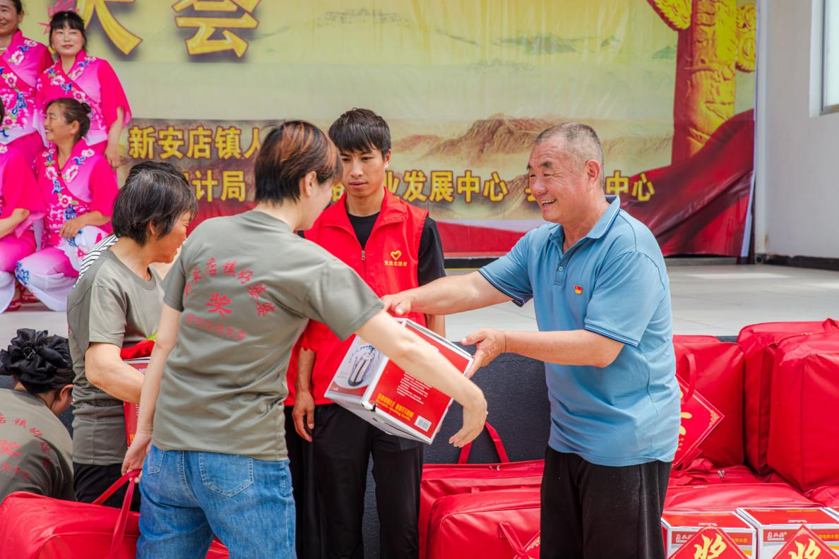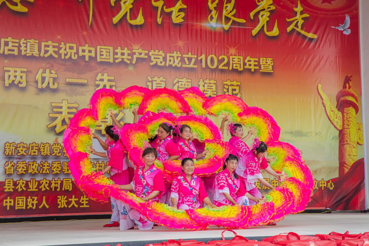 6月28日,在驻马店市确山县新安店镇庆祝中国共产党成立102周年暨“两优一先”、“道德模范”表彰大会现场,张大生满脸汗珠,跑前跑后,自费2万多元,为当天受到表彰的100位先进个人购买服装和毛巾等奖品,还提前搭建遮阳棚、编排了文艺节目,让父老乡亲欣赏接地气的节目,感受身边平凡人的伟大。