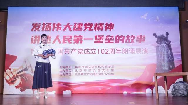 为了深入学习贯彻党的二十大精神,继承和发扬党的优良传统和革命精神,进一步培育和践行社会主义核心价值观,热烈庆祝中国共产党建党102周年,2023年6月28日上午,由顺义区文化和旅游局指导,顺义区文化馆主办的“发扬伟大建党精神,讲述人民第一堡垒的故事”暨庆祝中国共产党成立102周年朗诵展演活动在北京市焦庄户地道战遗址纪念馆成功举办。顺义区文化和旅游局党组成员、二级调研员苑新海,顺义区焦庄户地道战遗址纪念馆党支部书记王国兴及现场参观游客120余人参加了本次活动。
