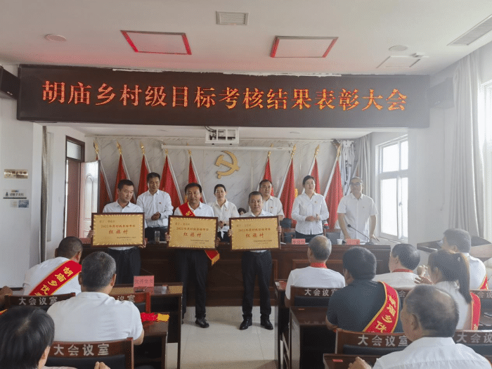 为践行二十大精神,在热烈庆祝中国共产党诞辰102周年之际,胡庙乡召开村级目标考核结果表彰大会,乡党委书记赵敏主持会议,乡领导班子成员、村“两委”成员、各村优秀共产党员参加此次会议。