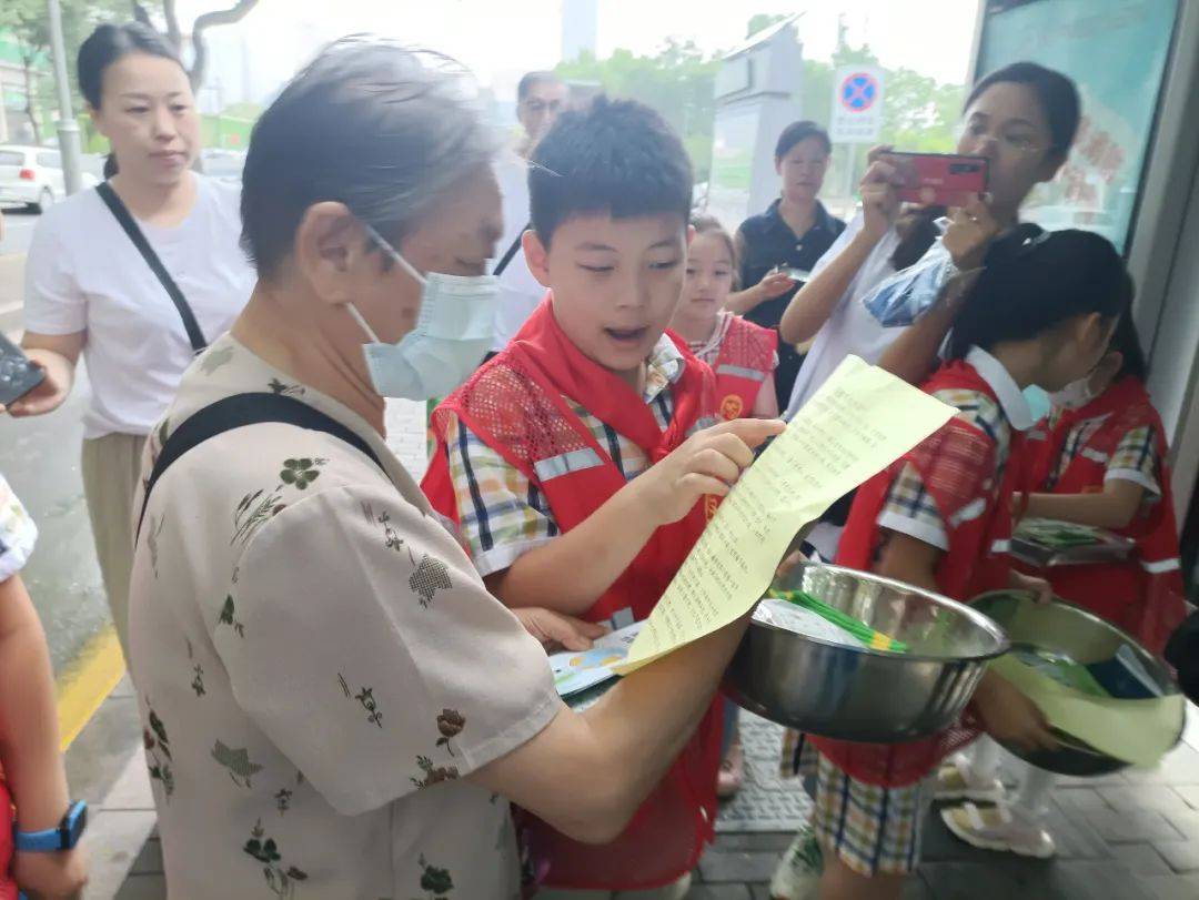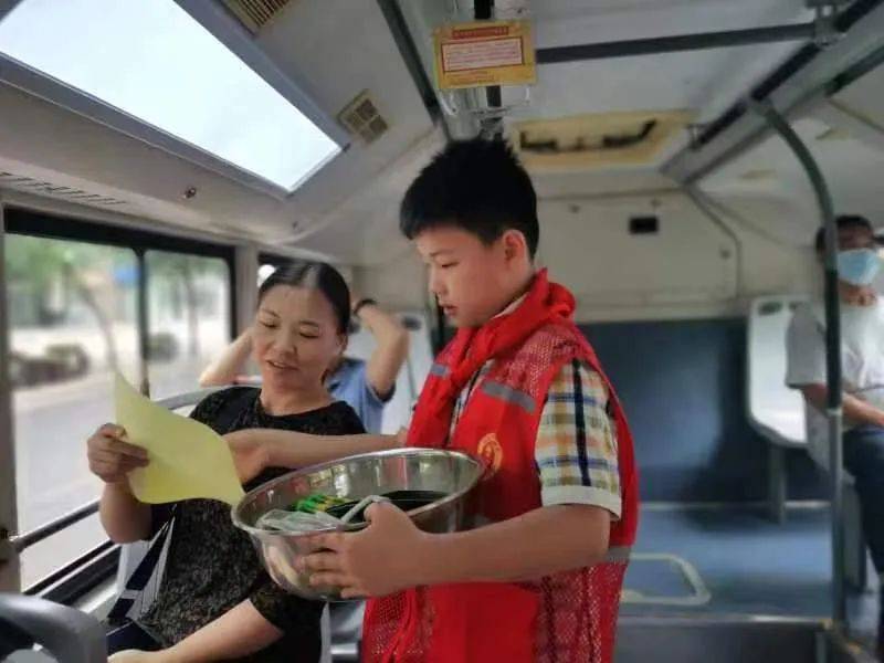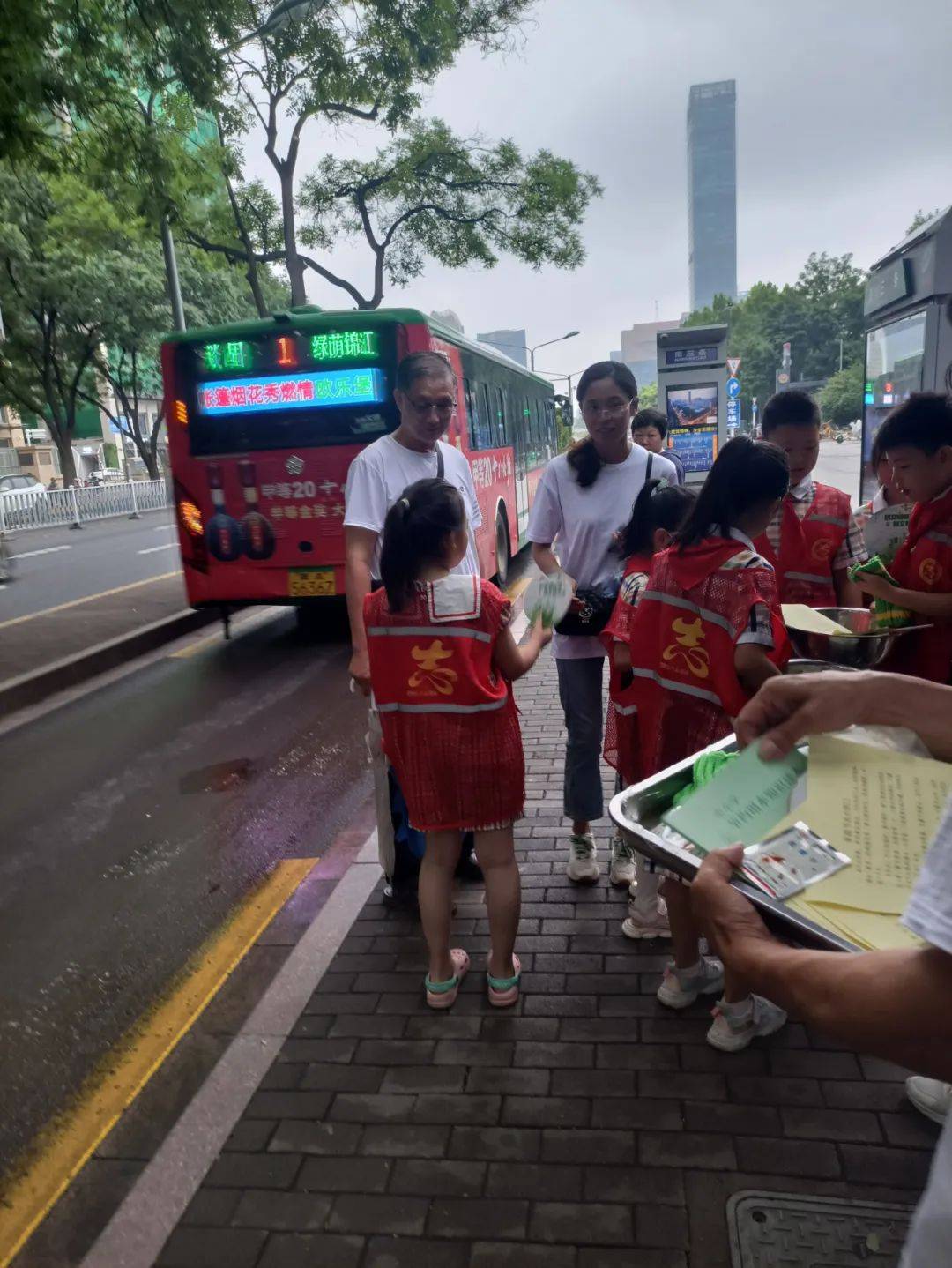 7月13日,石家庄一家人志愿者团队与石家庄市东马路小学的师生们到中山路、南三条附近的公交站点,参加由石家庄市文明办倡导的“双争有我,周四有约”文明乘车志愿服务活动。