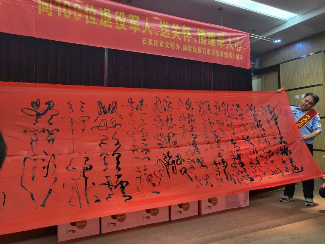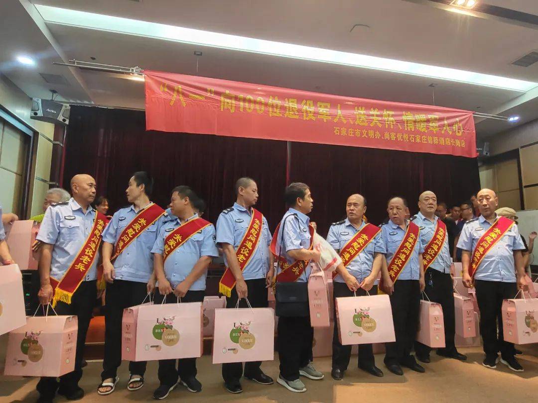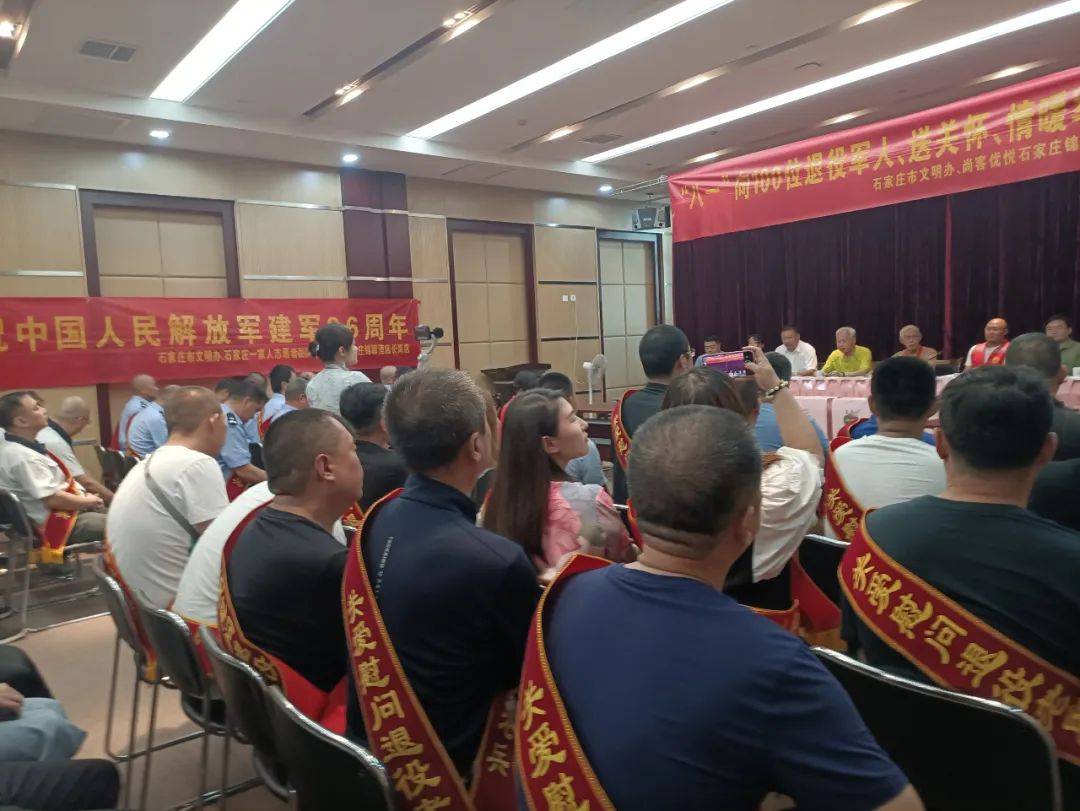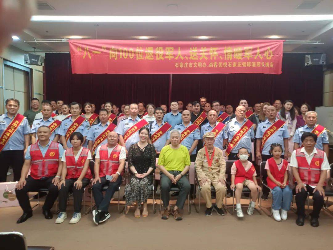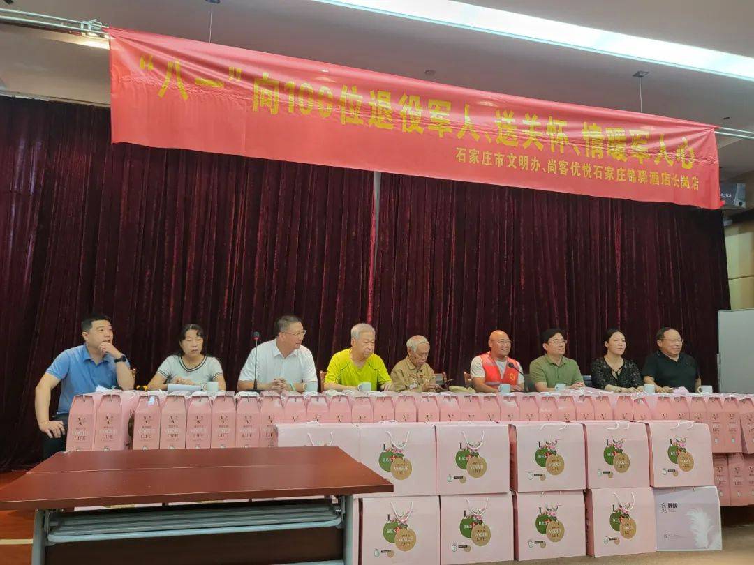 “八一”送关怀,情暖军人心,由石家庄市文明办,石家庄供水有限责任公司、长安区文明办、石家庄一家人志愿者团队,尚客优悦石家庄锦驿酒店长岗店共同发起的慰问退役老兵活动在石家庄市新世隆三楼西二会议室举行。