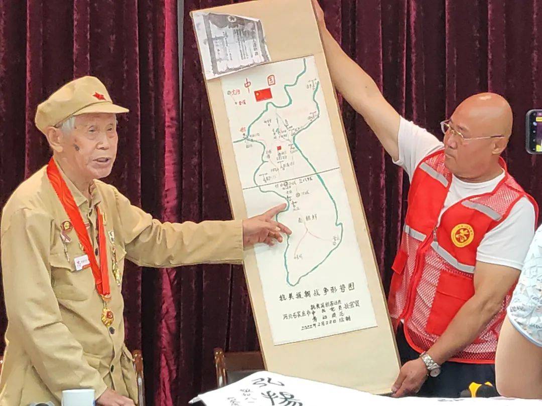 抗美援朝老战士岳宜贤和抗美援越老战士段俊杰给水业科技公司和供水公司赠送书法作品。