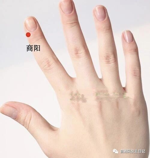 商阳穴:商阳穴位于手食指末节桡侧,指甲根角侧上方0.1寸。