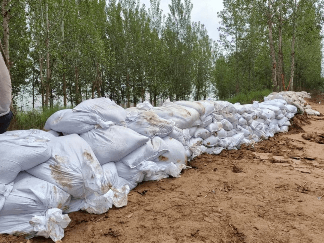 8月2日上午,大步村段水位距堤顶1.3米,胡各庄段水位距堤顶1.4米,形势依然严峻,水位还在缓慢上涨,沙袋已经叠加三层,胡各庄段和葛各庄段堤围沙袋合龙。