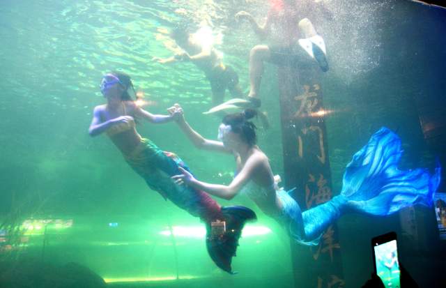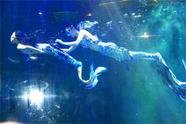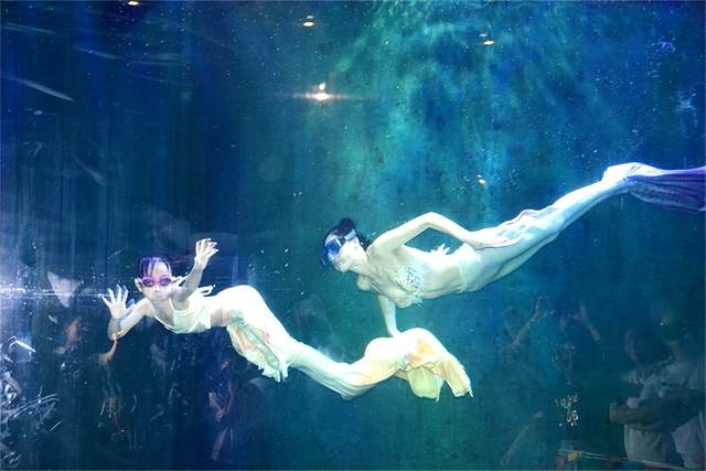 表演中,水下精灵们会展示独特的水下舞蹈和华丽的动作。她们身着华美的鱼鳞服装,化身成水中的仙子,伴随着音乐,环绕着五彩斑斓的鱼群翩翩起舞。