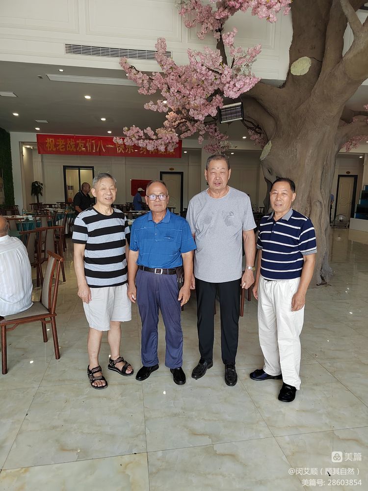 7月30日,天门市黄潭区域部分铁道兵战友,以聊天和自娱自乐等形式,相聚在一起,喜庆建军节。战友们平时因忙于家庭亊务,没有机会见面,为增进友谊,加深感情,我们借八一建军节时机,給战友们提供了见面的机会。力争做到每个战友都有出镜的机会,在镜头前面表现一下自己。因为居住武汉的胡还忠战友(同济医学院教授)十多年没有回老家,争相与之合影。这些都是奔八的人见面后,又是拉手,又是拥抱,都像孩子似的,总是不停地唠叨儿子、孙子,唯独没有把自己放在心里。可怜这一代人,希望大家都健康!下面将活动的部分场面分享给大家。谢谢大家。