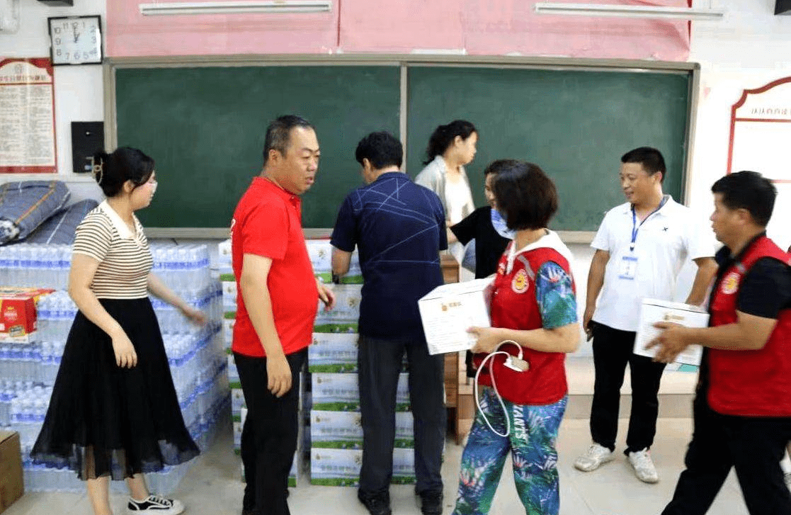 送往河渠中学安置点金银花纯净水100箱、枣花佳饮料100箱、面包20箱、方便面20箱、花露水4件160瓶、风油精40盒100瓶、卫生纸25包、湿巾25袋175包等物资价值15172.5元。
