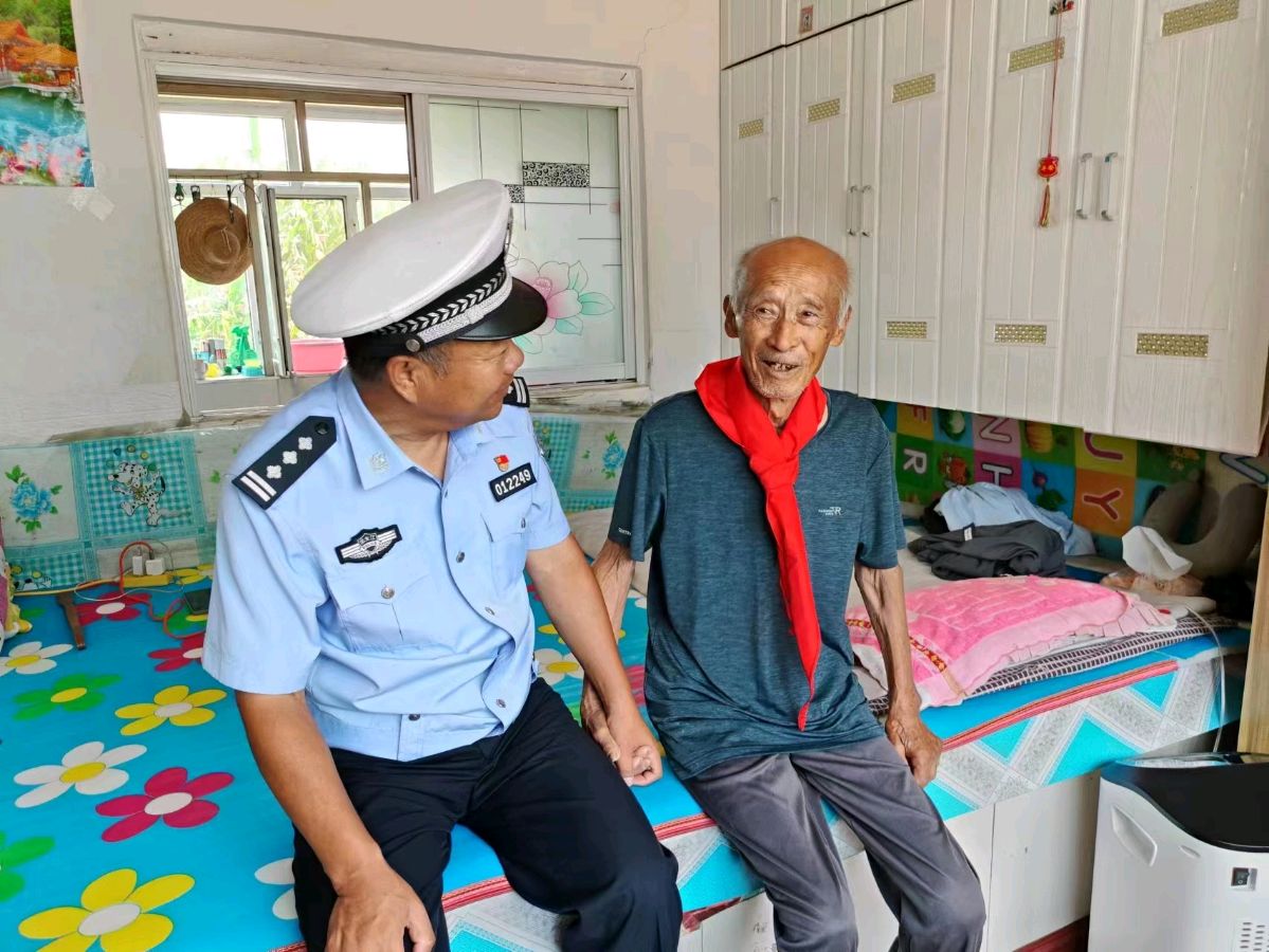 本网讯(王振磊)今年是抗美援朝战争胜利70周年,中国人民解放军建军74周年。30日,哈尔滨市公安局交警支队太平大队民警、道外区交通安全志愿者协会党支部书记、会长张永学和家人一起来到道外区永源镇永和村慰问看望了参加解放战争和抗美援朝老战士孙井祥,现场聆听老战士讲解战场上的战斗经历,使张永学全家深受感动,孙子张博然(哈尔滨市群力实验第三小学校二年一班学生)给孙井祥爷爷佩戴红领巾,敬队礼,并庄重地说:请爷爷放心,我一定接好革命的班。