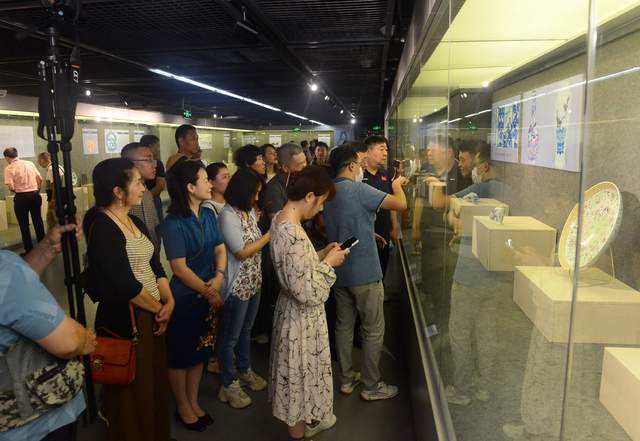 展厅内,一件件精美绝伦的展品引得大家连连赞叹,人物刻画栩栩如生,花鸟鱼虫活灵活现,山水楼阁雄伟奇绝,最重要的是每件瓷器上的绘画都暗含吉祥寓意,表达了对和谐美好生活的期望和憧憬。