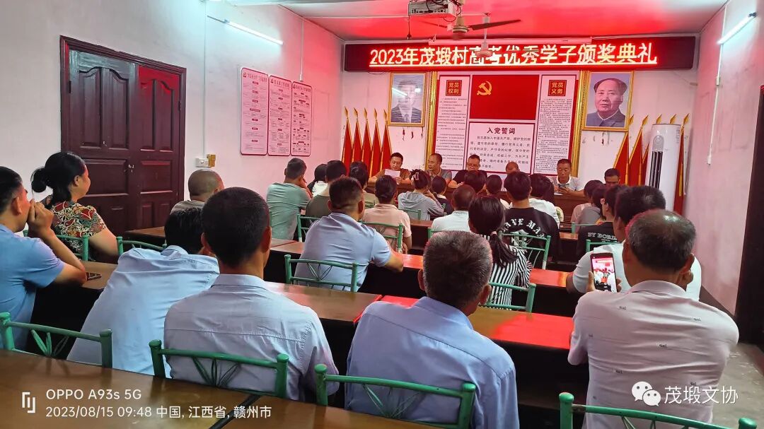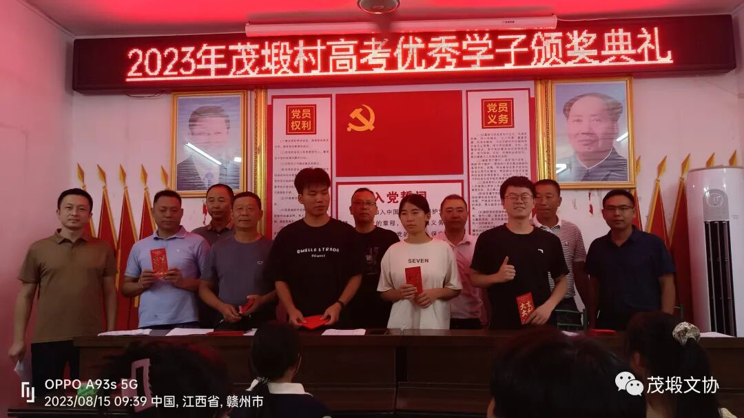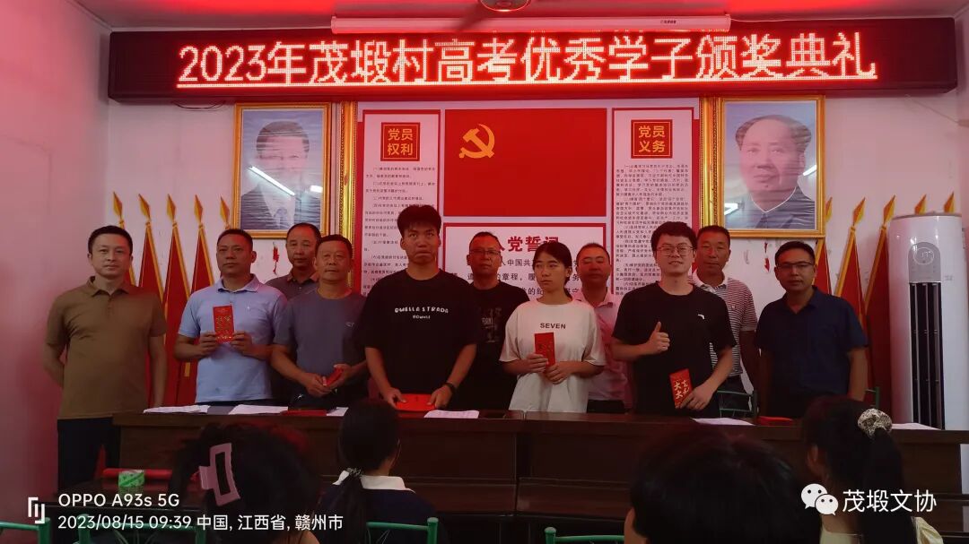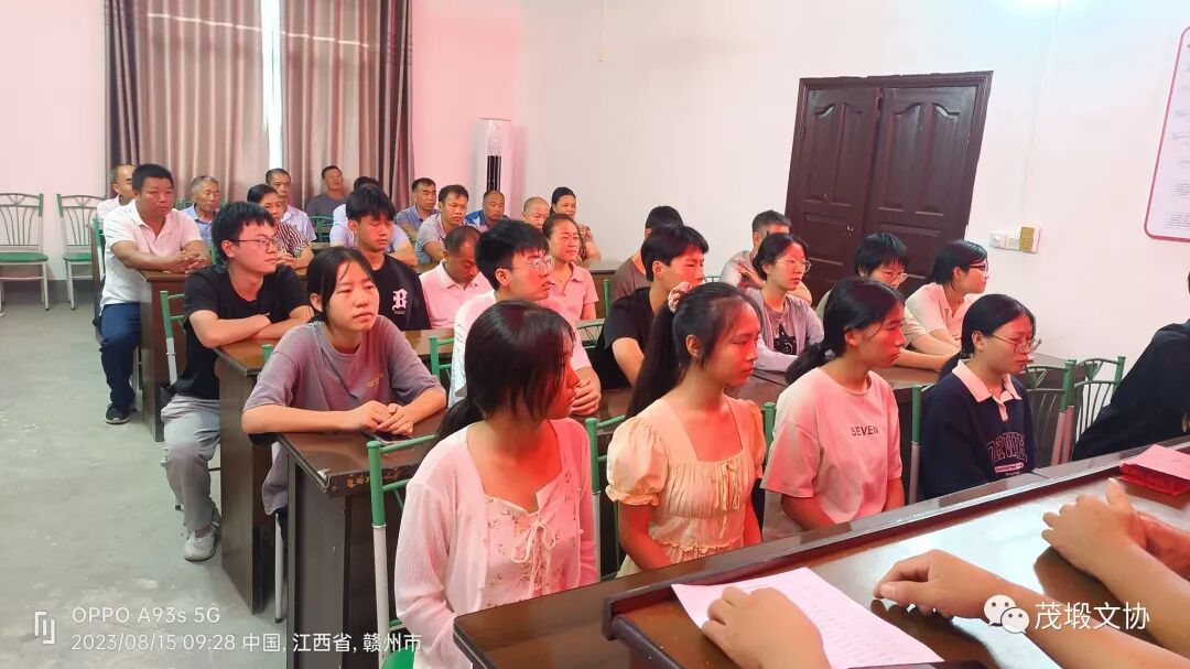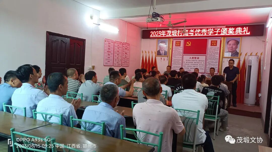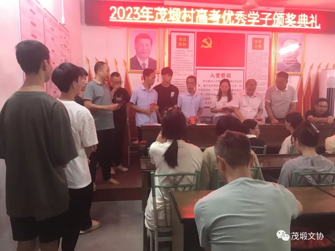 2023.08.15金秋送暖,艳阳高照,迎来了由茂塅文化协会、茂塅村委会如期举办一年一度的高考奖学金颁奖仪式,在茂塅村委会三楼如期举行,2019年茂塅考取了14个,2020年茂塅考取了18个,2021年茂塅考取了24个,2022年茂塅考取了25个,今年是最丰顺的一年,考取了26个,含985博士生二个211硕士生一个,硕士研究生一个,985大学生一个,一本生二个,当兵青年一个,二本生19个,会议由萧剑辉主持