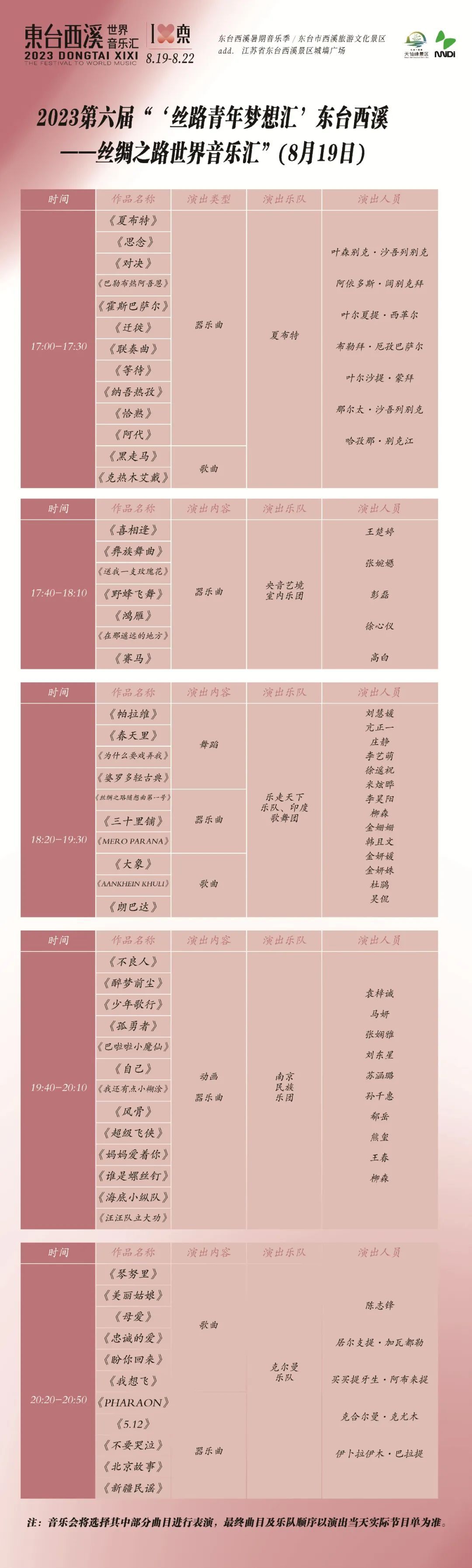 8月19日至22日,13:00至音乐汇结束期间,景区封闭管理,凭票入场。