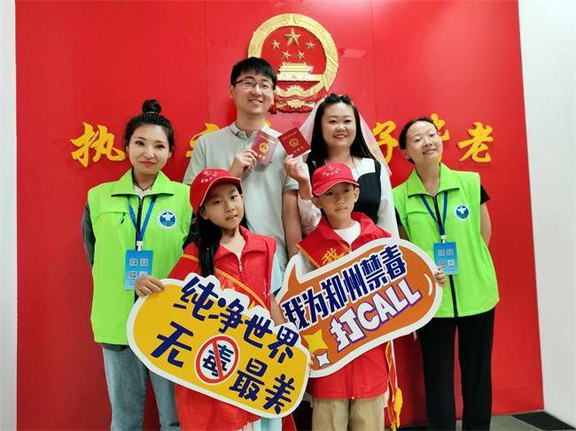 上午9时,管城区民政局婚姻登记处热闹非凡,前来登记办理结婚证的情侣排起了长龙,禁毒社工化身“爱意见证人”携手禁毒“小卫士”共同为一对对新人送上象征爱情的“禁毒玫瑰花”,并向大家讲解毒品的危害和禁毒法律法规,鼓励新人提高识毒、防毒能力,珍惜美好的生命与爱情。