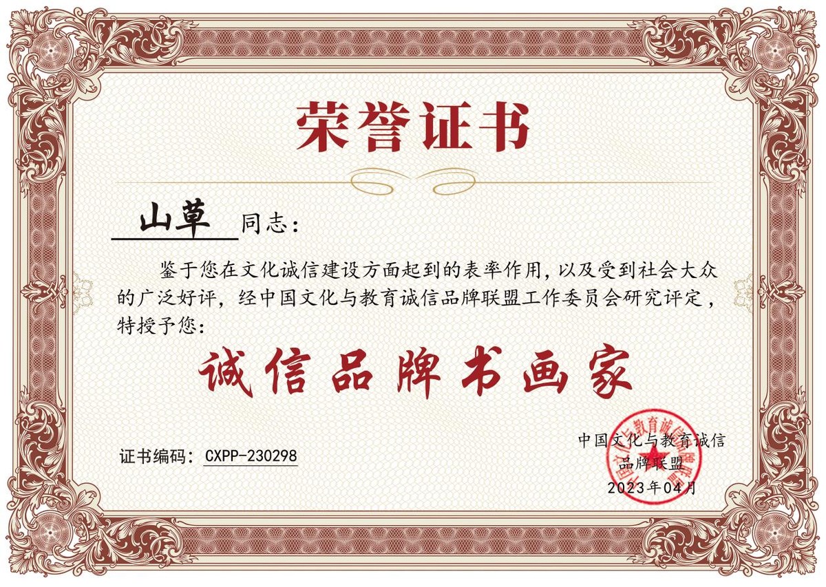 2023年3月,在首届“星光杯”全国书画精英作品评选活动中荣获绘画组金奖、书法组一等奖(潘震宙颁奖)。是墨韵文渲·风华新时代“2023全国重点推荐艺术家”。其作品多次被邮政局编入邮册收藏版并发行。