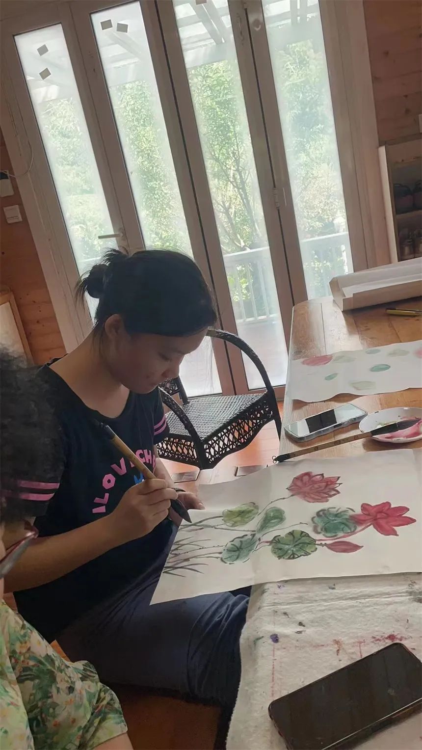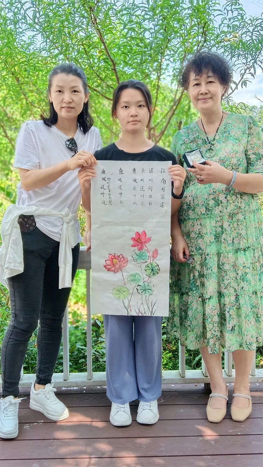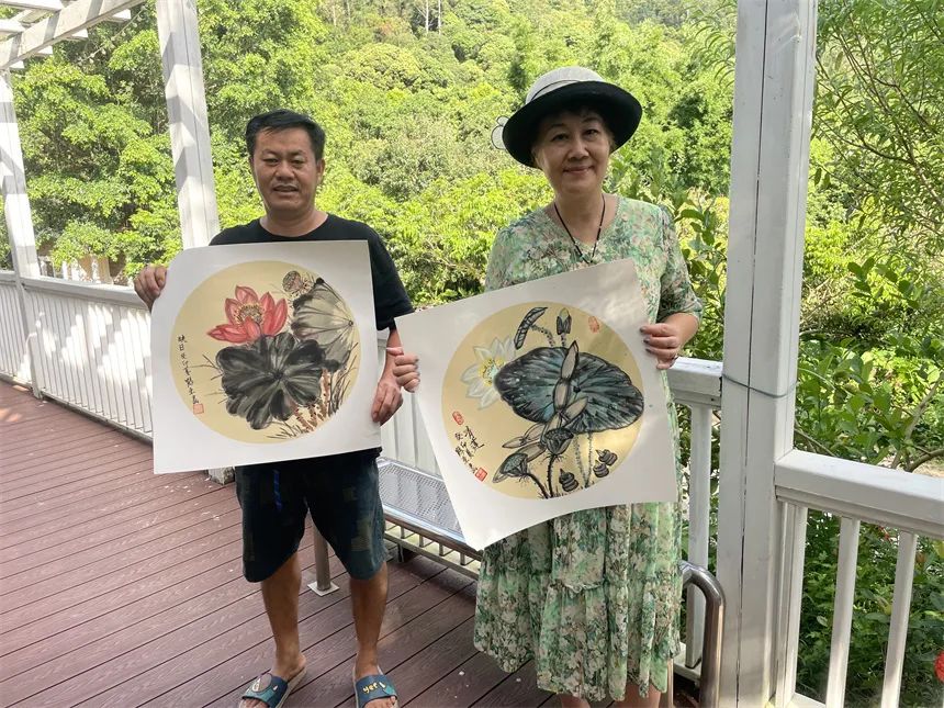八月五日风和日丽的周六,我们罗兰艺术中心组织夏季第一场游学,一行十人经二个小时车程抵达中山枫叶生态公园。我们到生态公园得到庄主赵总的热情款待,品尝十道农家菜。餐后朋友们相互认识后,进入到国画挥豪环节,在鹤東老师的指导下,与会者一齐研习荷花画法,分别完成荷趣作品的挥豪,朋友得到两家公司的奖品,大家倍受鼓励,鹤東老师《清莲》、《映日》两幅作被赵总所收藏。下午四点我们参观种植十年的果园,观赏着青山绿水,亲近大自然,品尝清甜的龙眼,放眼蓝蓝的天空,感受到青草的芳香;十位朋友们与孩子们放开心怀,在青草地上尽快欢跳,山泉水洗脸,涤荡心中烦意;在荡秋千环节,每位参与者都寻回青春的活力,规划与期待下次再来……这是一次很好的游学,也是一次很有意义的团建。