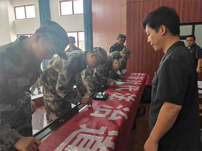 同时,法官们与预定新兵开展了“走新时代法治道路做新时代革命军人”主题签名活动,不断增强入伍新兵自豪感、使命感、荣誉感。