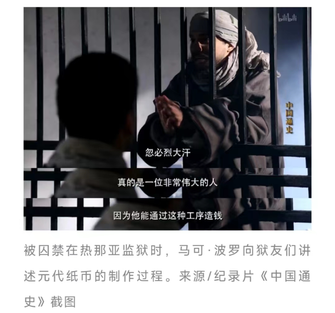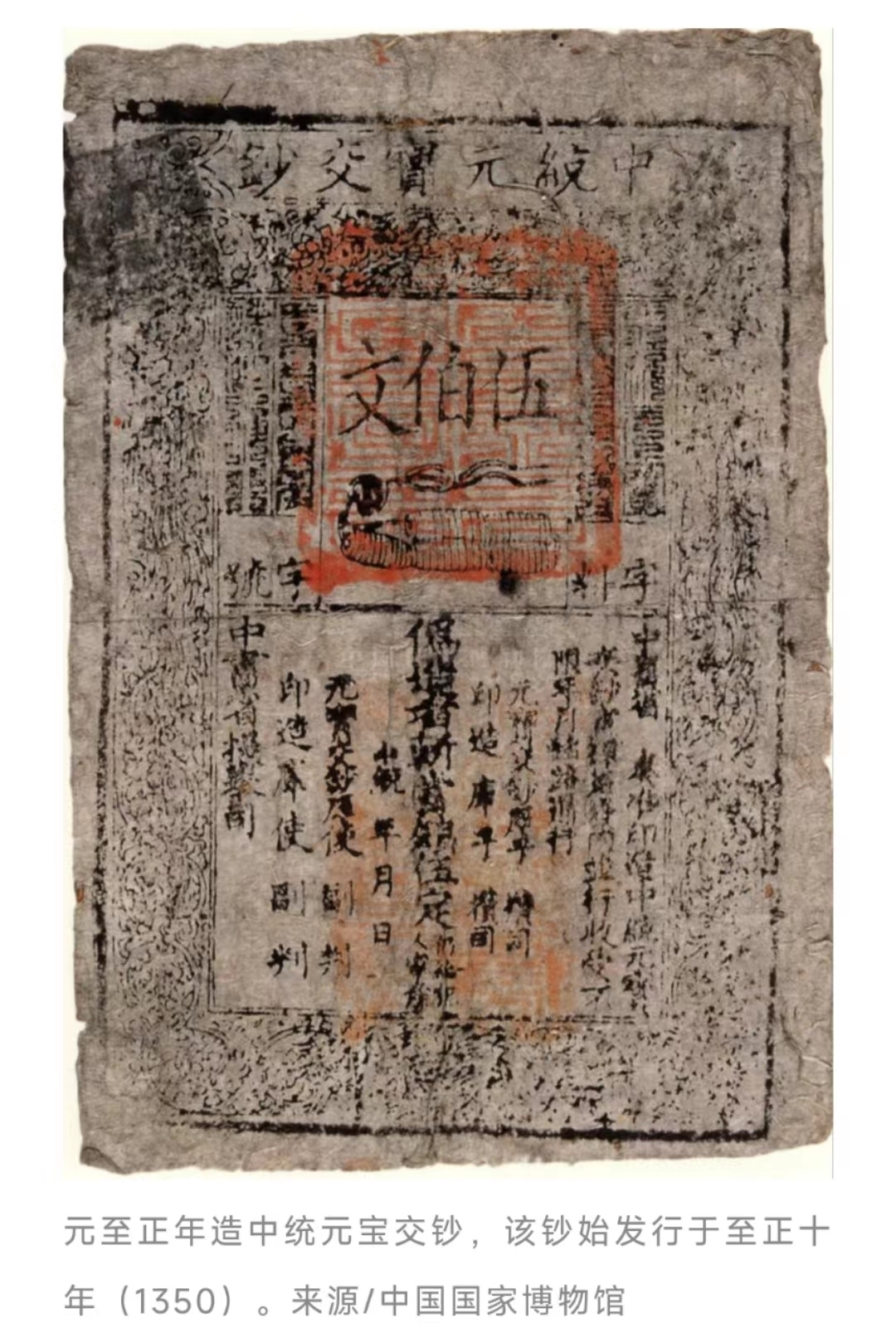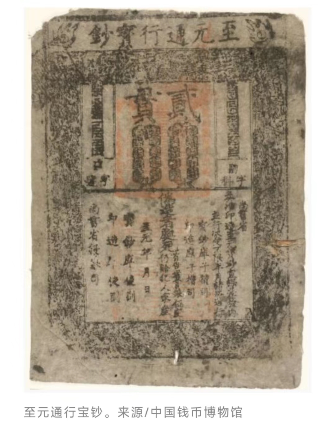 元代纸币制度在意大利旅行家马可·波罗的游记中有着详细记载。虽然马可·波罗的书被认为“掺杂了待证实的事实”,但书中很多生动的细节可以与正史印证,尤其是关于纸币的部分,甚至从时间点来看,欧洲正是在马可·波罗的书之后才出现纸币雏形。