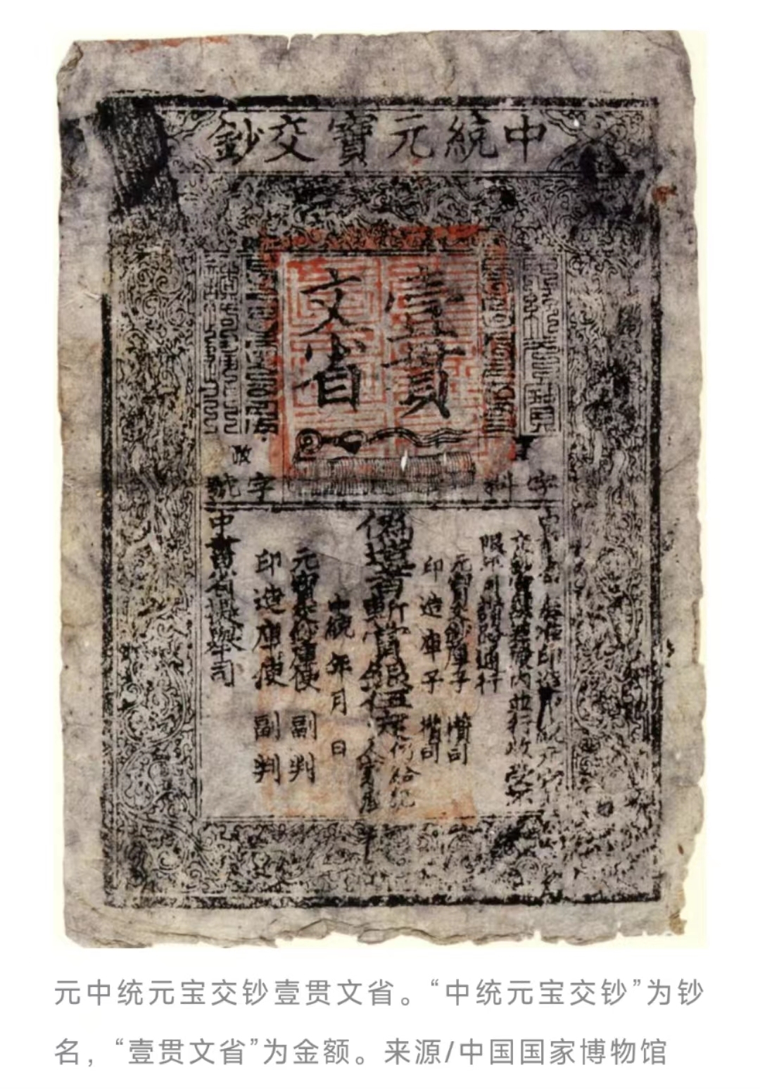 中国作为世界上第一个使用纸币的国家,早在宋代便出现了最早的纸币——“交子”。而元代更是世界上最早以统一的纸币作为基本货币制度的国家。目前世界上现存最早的纸币实物,便是元世祖忽必烈执政的中统元年(1260)发行的“中统元宝交钞”。