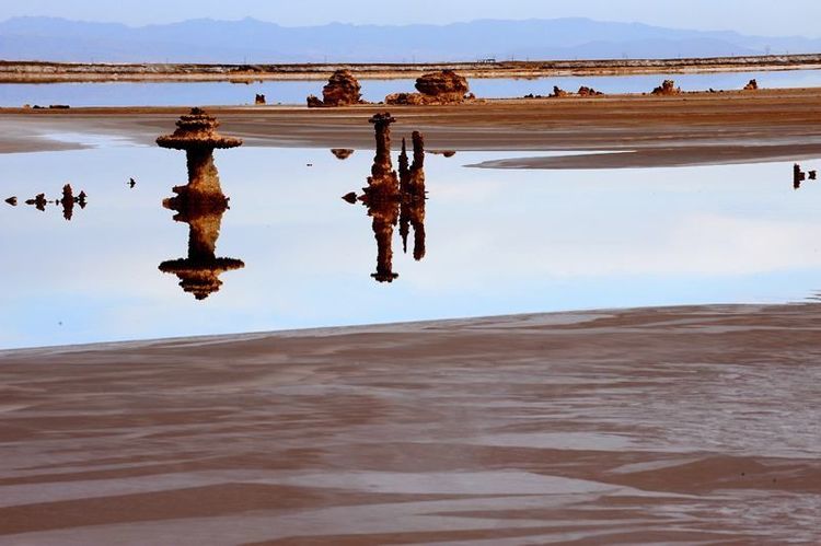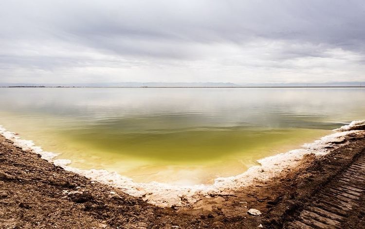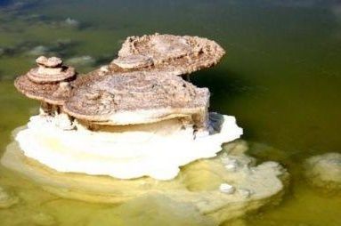 第二天醒来,我赶紧跑出去看天色。满眼混沌迷蒙,不见霞染曙色,分明是沙尘暴欲来的兆头。不用说,观赏蜃景的希冀,会被这场沙尘暴给搅黄了。昨夜没有看清的盐湖,与我想象的情景相差甚远,这里并不是一个银色的世界!千百万年以来,黄沙被漠风卷进盐湖,与卤水如胶似漆地混合在一起,形成了坚如岩石的大盐盖。一块块盐壳皱纹般爬满湖面,荒漠般苍凉。真有点扫兴,一声叹息送我返回营房。