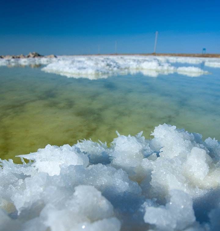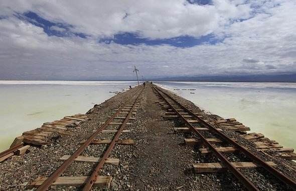 走出盐巴礼堂,天色明朗了。沙尘暴欲来的迹象已无踪影。蓦然看见新铺的铁路线上,钢轨在闪亮。那撩目的“闪亮”里,该融入了盐石花的色彩吧?可以预料,这条铁路通车后,盐湖上会有更多的厂房、楼舍和彩色的人群……