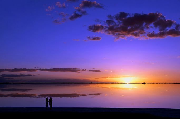 察尔汗盐湖位于柴达木盆地腹部,海拔2800多米,方圆1600多平方公里,广袤雄浑,是我国最大的内陆盐湖。听说逢着晴天,碰巧了,盐湖上就能看到神秘的蜃景。我们铁道兵曾在这里扎营修路,苦中也能寻到生活中的情趣。