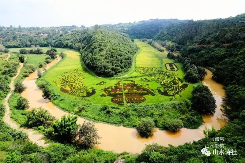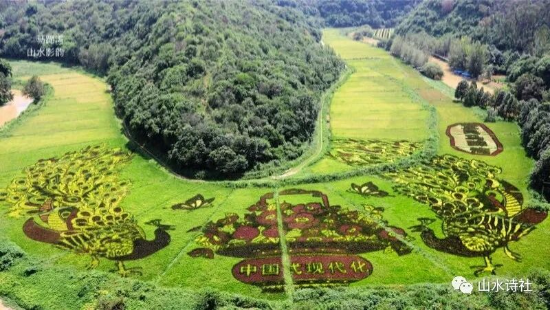 枫红岭赤秋情漾,天蓝湖碧莲舟荡。松青菊艳山花放,田黄谷秀蛩声唱。平畴黍稷馨,沃野风光亮,金波稻海丰收望。