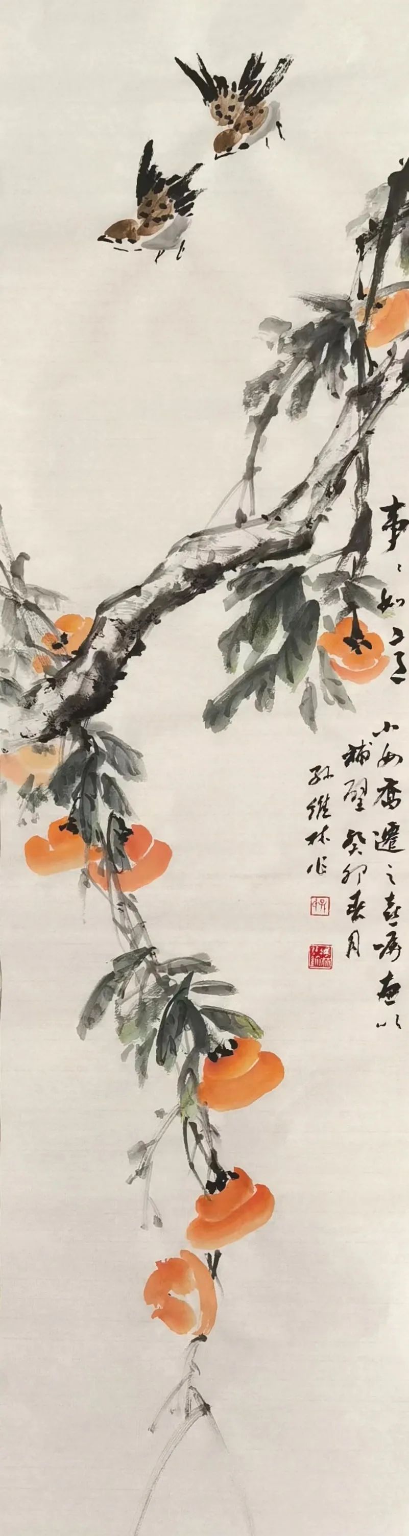 谁言秋尽江南景,到处明霞映柿红。