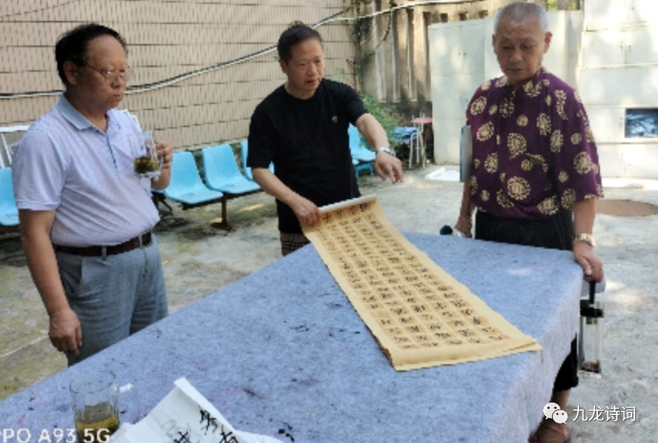 盛夏的书画交流活动日,虽然骄阳似火,但“老书协”会员们热情如炉,一大早就来到了活动场地伏案开展书画交流: