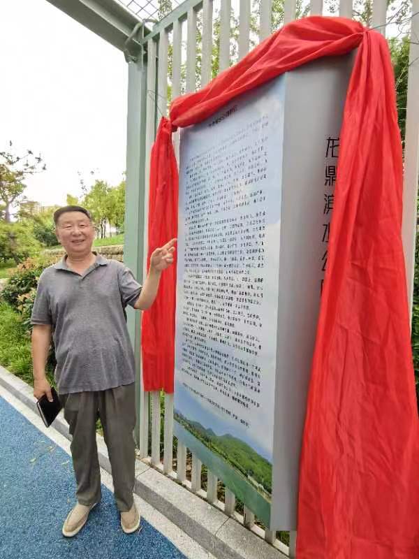 济南周三读书会创始人李炳锋先生(金后子),有感于龙鼎滨水公园(亦称孟家水库)建成,于5月30日在《济南日报》发表《一泓碧水润东城》散文。历下区委、区政府决定将这篇地标性美文,以《龙鼎滨水公园侧记》为题镌刻于不锈钢板上,悬挂在北岸文化墙向游人展示。2023年9月20日,碑文落成仪式举行,特以诗记之。